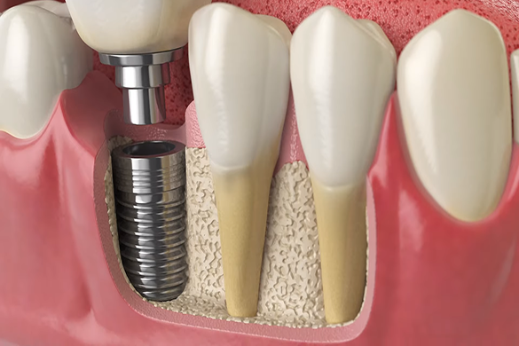 Per sostituire i denti mancanti si utilizzano “viti” (impianti) posizionate nell’osso.